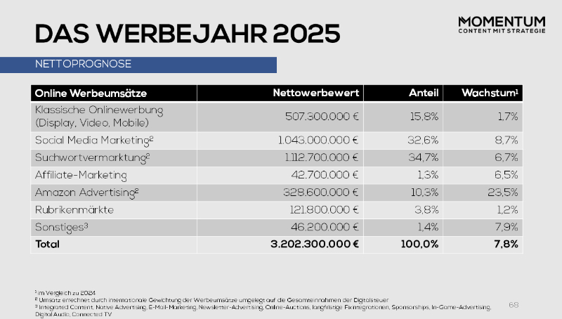 Das Werbejahr 2025 – Nettoprognose © Momentum