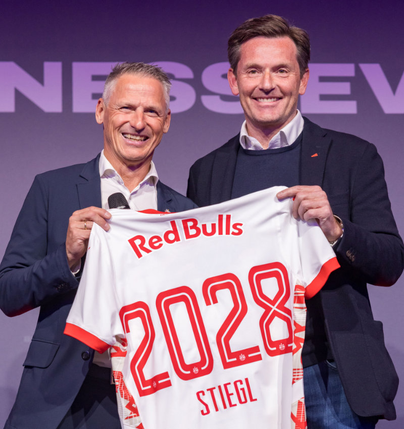 Stephan Reiter, Geschäftsführer FC Red Bull Salzburg (links) und Thomas Gstaltmaier, Generalrepräsentant Stiegl © wildbild