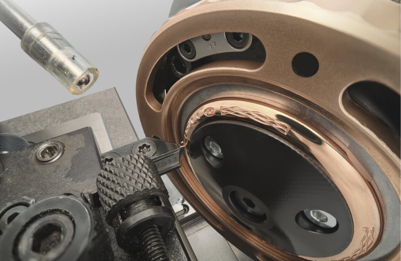 Das neue Kaliber VS00 besteht aus vergoldetem Messing im gleichen Farbton wie das Breguet-Gold des Gehäuses. Das Uhrwerk verfügt über ein einziges Federhaus, das eine Gangreserve von vier Tagen liefert. Die Spiralfeder, die das Zentrum der Präzision einer jeden Uhr darstellt, ist gebläut und mit einer Breguet-Endkurve versehen.