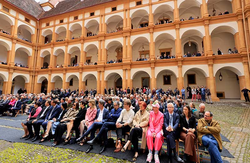 Es ist ein Barockjuwel und über die Grenzen hinaus bekannt: Schloss Eggenberg am Grazer Stadtrand ist seit 2010 UNESCO-Weltkulturerbe. Hans Ulrich, der erste Fürst von Eggenberg, gab 1625 den Auftrag, dieses Residenzschloss zu bauen. Das 400-Jahr-Jubiläum ist Anlass für die diesjährige Steiermark Schau, die unter dem Titel Ambition & Illusion dem Schloss und vor allem auch all seinen Bewohner:innen eine Ausstellung widmet. Vor wenigen Tagen wurde die Schau mit zahlreichen Besucher:innen, darunter viele Ehrengäste aus Kunst, Kultur, Politik und Wirtschaft, feierlich eröffnet – musikalisch umrahmt vom Ensemble Ārt House 17 mit den Sounds of Eggenberg. Bis 2. November bietet die Schau im Schloss und in allen Museen vor Ort die Möglichkeit, in die Welt der Eggenberger einzutauchen.