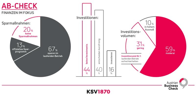 Bei der finanziellen Situation sieht laut dem Austrian Business Check 2025 kaum besser aus. Dem KSV1870 zufolge sehen sich viele österreichische Unternehmen gezwungen, konsequent an der Kostenschraube zu drehen. Acht von zehn Betrieben haben demnach zuletzt spürbare Sparmaßnahmen umgesetzt – entweder im Rahmen offizieller Programme oder durch Einsparungen im laufenden Betrieb. Gleichzeitig zeige sich beim Eigenkapital eine erste Abwärtstendenz, was die ohnehin schwache Investitionsbereitschaft weiter dämpfe: Für das Jahr 2025 plane kaum ein Unternehmen Investitionen in größerem Stil, so der Kreditschutzverband.