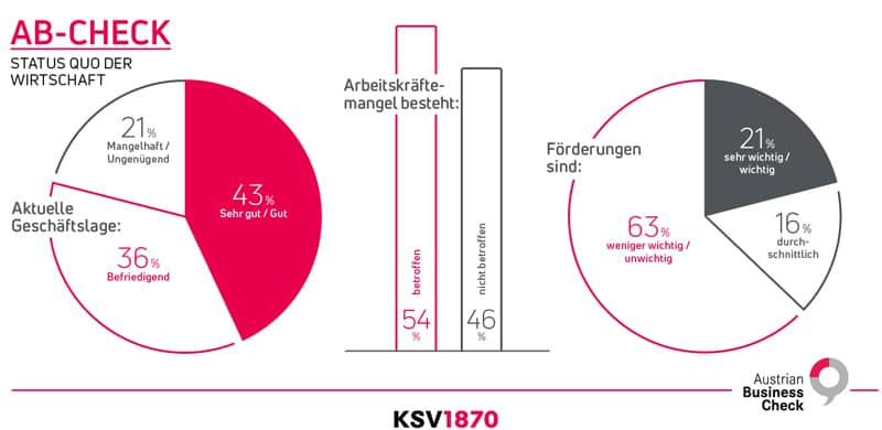 Zudem leide mehr als die Hälfte der Betriebe weiterhin unter akutem Personalmangel – besonders betroffen seien Gastronomie, Bau und Gesundheitswesen. Dies führe zu steigenden Personalkosten, Überlastung und Auftragsverlusten. Gleichwohl sehen sich rund 70 Prozent nicht in der Lage, zusätzliche Stellen zu besetzen. Vybiral resümiert: "Zwischen Fachkräftemangel und Wettbewerbsfähigkeit stehen viele Unternehmen vor einer kaum lösbaren Herausforderung."