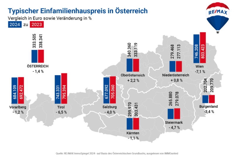 Typischer Einfamilienhauspreis in Österreich © Remax Immospiegel 2024 – auf Basis des Österreichischen Grundbuchs, ausgelesen von IMMOunited