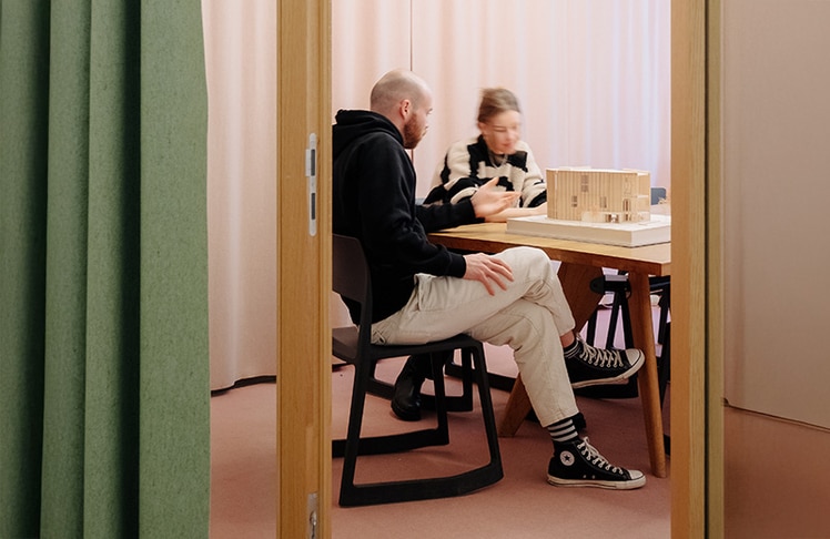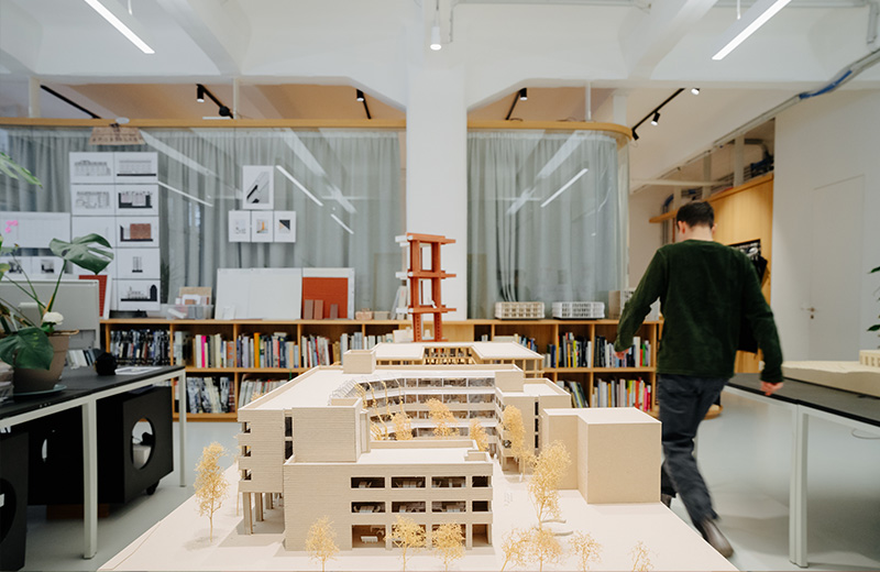 Es beginnt mit einem Lichtstreifen auf poliertem Beton. Morgenruhe im Büro von Schenker Salvi Weber. Noch sind die Modelle stumm, noch warten die Entwürfe auf den ersten Blick. Dann Stimmen, Bewegung – der Alltag beginnt. Gespräche über Materialien, Räume, Menschen. Architektur nicht als Bau, sondern als Haltung. Als Weiterdenken.