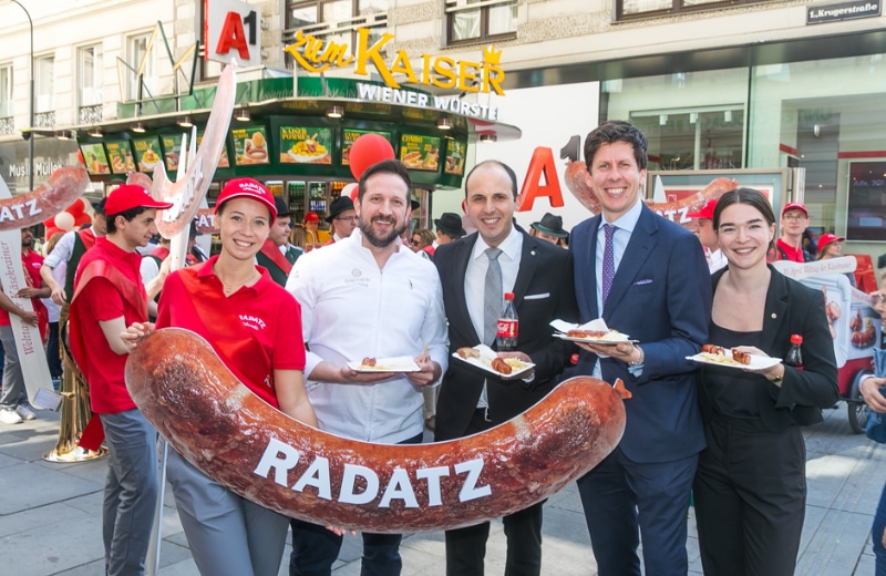 Für das Familienunternehmen, das heute in zahlreiche europäische Länder expandiert, Grund genug, die Käsekrainer jedes Jahr rechtzeitig zum Start der Grillsaison gebührend zu ehren. Dafür ruft Radatz bereits seit 2014 jährlich am 30. April zum "Welttag der Käsekrainer" aus. So auch heuer – und zwar in Form eines besonderen Festzugs: Gemeinsam mit Blasmusiker:innen der BOKU Kapelle führte der "Radatzky Marsch" zu ausgewählten Würstelständen in der Wiener Innenstadt, in der zahlreiche Gäste die Original Radatz Käsekrainer verkosten konnten.