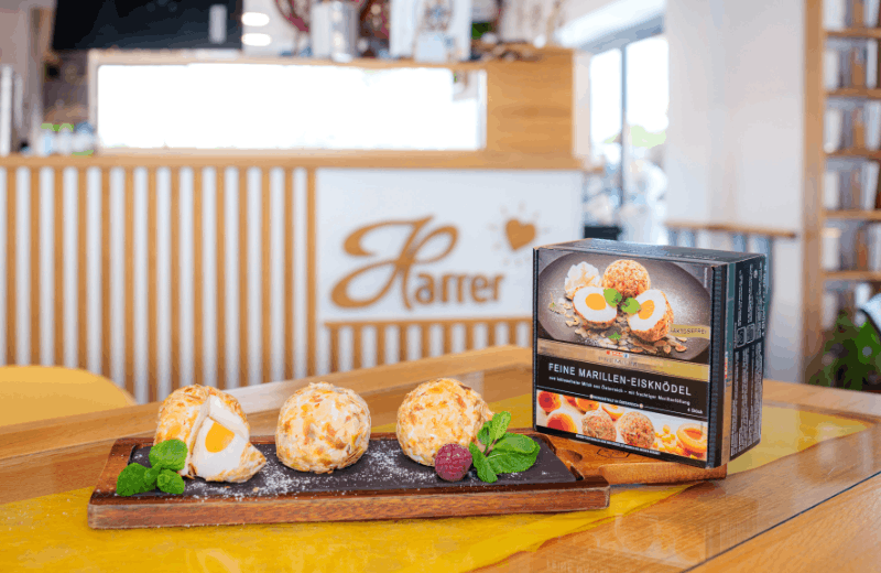 Im niederösterreichischen Sollenau kommt den Marillen nochmals eine andere Bedeutung zu. Denn in der familiengeführten Eismanufaktur Harrer Eisdielen verarbeitet man die Steinfrüchte zu einer Delikatesse. Der Familienbetrieb wird aktuell in zweiter Generation geführt. Ihre wichtigste Spezialität des Hauses sind die Eisknödel-Variationen. So auch jene mit Marille, die für die Supermarktkette Spar noch von Hand gerollt werden.
