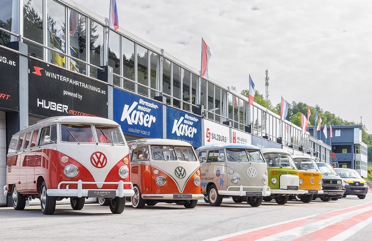 Doch nun zur eigentlichen Veranstaltung am Salzburgring. Volkswagen Nutzfahrzeuge hat sich für die tausenden Fans einiges einfallen lassen. So bot das Rahmenprogramm beispielsweise eine Heritage-Ausstellung (vom T1 bis zum ID. Buzz GTX), Foodtrucks, Livebands, einen Repair-Talk, ein Kinderprogramm oder ein gerne in Anspruch genommenes Frühstücksservice. Bei den bereits erwähnten "Generationsboxen" in der Boxengasse hatten die Teilnehmer:innen einen passenden Ort, um sich mit gleichgesinnten Bulli-Fans auszutauschen. Zu den ausgestellten Modellen bzw. zu jenen, die für Probefahrten bereitstanden, zählten unter anderem ein "Sambabus" (T1), ein "Coca-Cola"-Bulli aus 1976 (T2), ein T3 in limitierter Auflage aus dem Jahr 1992, ein besonders seltener T3 B32 mit Porsche-Motor sowie Camper-Varianten von T2 bis T4.