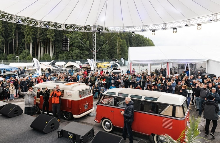 Vor dem offiziellen Startschuss am Freitagnachmittag gab es noch einen Medientermin, bei dem Journalist:innen vorab die Gelegenheit hatten, sich von den bisherigen Generationen in den sogenannten "Generationsboxen" (T1 bis zum T6) ein Bild zu machen, diese selbst am Salzburgring auszuprobieren und Informationen aus erster Hand zu bekommen. Denn für das große Treffen sind auch hochrangige VW-Vertreter aus Deutschland angereist. Allen voran Lars Krause, Vorstand Vertrieb & Marketing Volkswagen Nutzfahrzeuge. "Der VW Bus hat Generationen von Menschen begleitet und inspiriert. Seit einem Dreivierteljahrhundert ist er das Herz unserer Marke und transportiert Erfolg, Freiheit und Zukunft. Es ist mir eine große Freude, gemeinsam mit Bulli-Fans aus ganz Europa das Jubiläum dieser Ikone im Rahmen des Bulli-Treffens am Salzburgring feiern zu dürfen. Gratulation zu dieser großartigen Veranstaltung an die Kolleg:innen von Volkswagen Nutzfahrzeuge Österreich", sagte Krause.