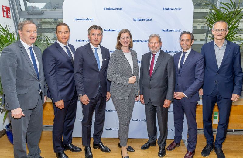 LEADERSNET.tv holte neben Robert Zadrazil, scheidender Präsident Bankenverband und Country Manager UniCredit Bank Austria, und Enver Sirucic, Präsident des Bankenverbandes, CFO Bawag Group, auch noch Gerald Resch, Generalsekretär des Bankenverbandes, Susanne Riess-Hahn, Vizepräsidentin Bankenverband, Helene Buffin, Vizepräsidentin, Johannes Hahn, ehemaliger EU Kommissar, Christian Helmenstein, Chefökonom IV, Leiter Economica und Professor Universität Seeburg, Robin L. Lumsden, US & EU Attorney, Vienna/NY/Silicon Valley und Bernhard Ecker, Chefredakteur Trend, vor die Kamera.