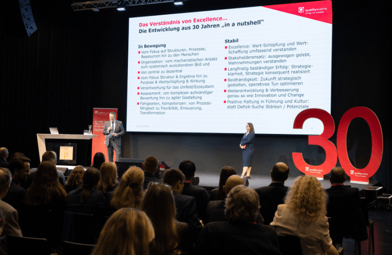 Nun lud Quality Austria zur nächsten Veranstaltung, dem Excellence Day 2025, im Rahmen dessen sich die Teilnehmer:innen intensiv mit der heimischen Wirtschaft auseinandersetzten. Mehr als 100 Vertreter:innen der Branche folgten der Einladung, beleuchteten in einem interaktiven Austausch die Kraft der Veränderung und holten sich Inspiration aus der Praxis von erfolgreichen Unternehmer:innen und Führungskräften.