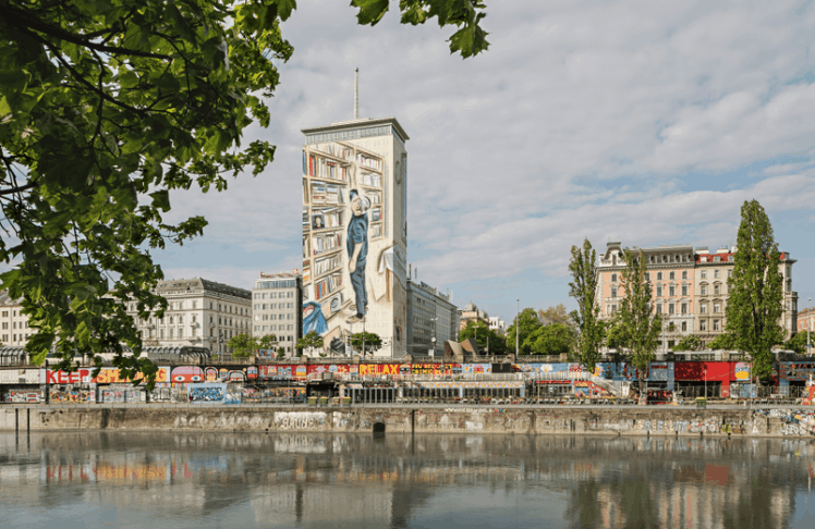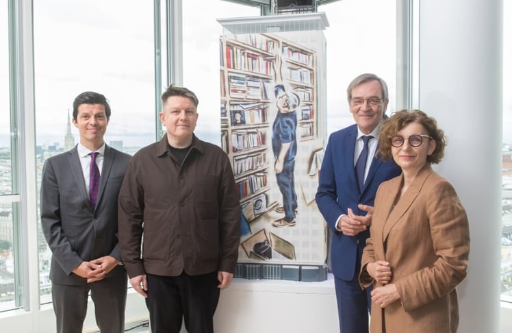 Sein Werk erklärt Künstler Marcin Maciejowski wie folgt: "Bücher sind das Fenster zur Welt. Dieser Gedanke begleitet mich schon eine lange Zeit. In meinem Werk streckt sich ein Mann nach einem besonderen Buch – nicht für sich allein, sondern um es zu teilen. Die stille, persönliche Atmosphäre einer Hausbibliothek überführe ich ins große Format des Ringturms, mitten in Wien. So wird mein Werk zur Verbindung von innerer Welt und öffentlichem Raum. Dass mein Werk im Herzen Wiens so sichtbar wird, erfüllt mich mit großer Freude. Mein aufrichtiger Dank dafür." Der Pole ist bereits der neunte Künstler aus der Region Zentral,- Ost- und Südeuropa, der vom Wiener Städtischen Versicherungsverein mit der künstlerischen Verhüllung des Ringturms betraut wurde. Mehr Informationen zu Marcin Maciejowski sowie eine Liste der Künstler:innen, die in der Vergangenheit den Ringturm verhüllen durften, finden Sie in unseren beiden Infoboxen.