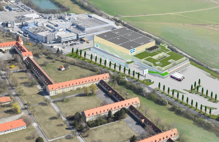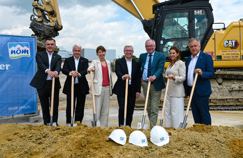 Michael Höllerer (4. von links), Stephan Pernkopf (5. von links), Josef Simon, Vorstand für Produktion und Technik der NÖM AG (1. von rechts) und Carmen Jeitler-Cincelli, Bürgermeisterin von Baden (2. von rechts) © NÖM