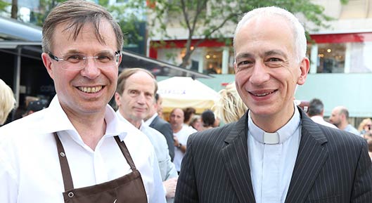 Auf Einladung von Caritas-Direktor Michael Landau, echo medienhaus-Geschäftsführer Christian Pöttler und café+co International Holding-CEO Gerald Steger verwandelte sich der Platz vor der Mariahilferkirche bereits zum zweiten Mal in ein überdimensionales Kaffeehaus, in dem Prominente Kaffeespezialitäten zugunsten der Gruft verkauften. „Kaffee verbindet Menschen aller Schichten und Herkunftsregionen. Deswegen möchten wir nicht nur Geld sammeln, sondern auch auf die Probleme der Ärmsten des Landes aufmerksam machen und direkt vor Ort sein“, erklärte Steger. Als nachhaltig agierendes Unternehmen veranstaltet café+co seit dem Vorjahr den Nachmittagskaffee für die Gruft. „Für unsere Gäste in der Gruft ist das Leben ein täglicher Überlebenskampf. Im Vorjahr wurden über 97.000 warme Mahlzeiten ausgegeben – mehr denn je. Der Druck auf jene Menschen, die am Rande der Gesellschaft stehen, nimmt zu. Unsere Solidarität ist da gefragt“, begrüßte Landau die Aktion.