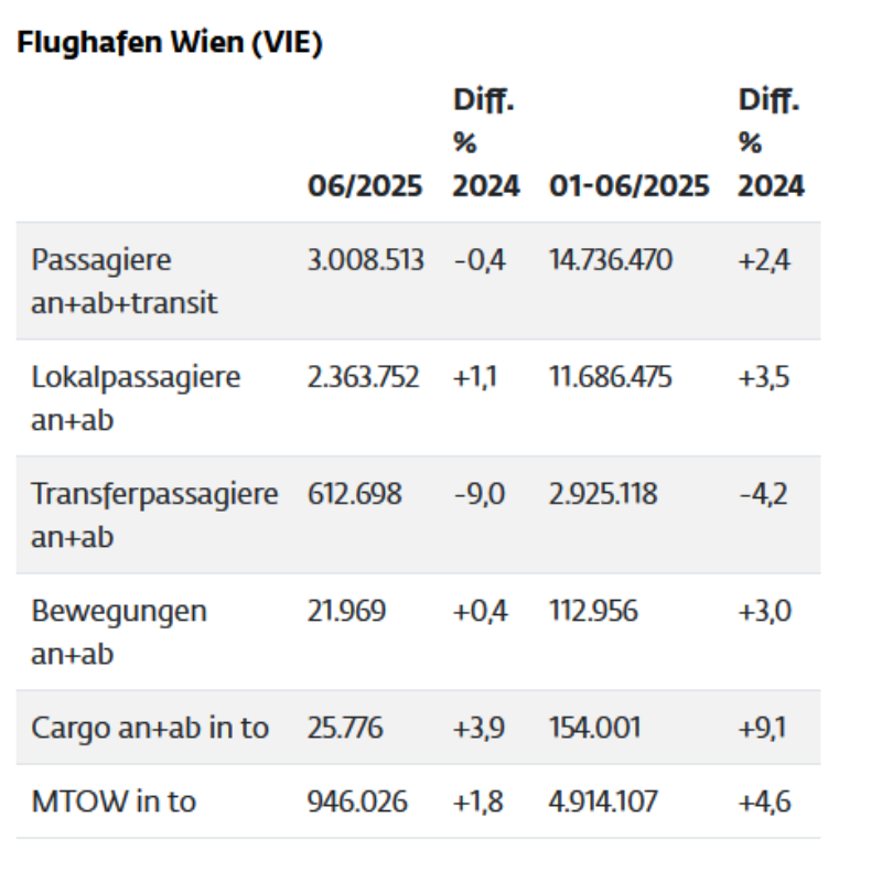 Flughafen Wien – Verkehrsentwicklung © Flughafen Wien