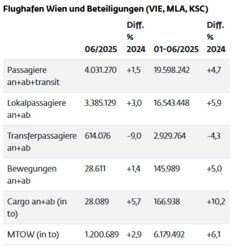Flughafen Wien und Beteiligungen – Verkehrsentwicklung © Flughafen Wien