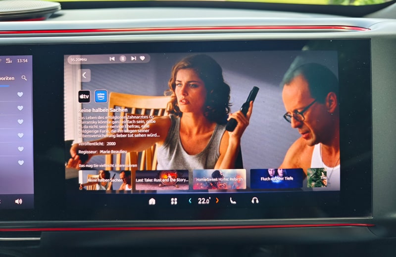 Natürlich müssen wir beim #5 auch noch über das Design sprechen – schließlich ist er ein smart, wie es ihn zuvor noch nie gegeben hat. Optisch ist das neue Flaggschiff ein Statement – mit klarer Polarisierung. Im Laufe des zehntägigen Tests haben wir immer wieder Personen gefragt, wie ihnen das Elektro-SUV gefällt, oder wurden direkt auf das Design angesprochen. Ergebnis: Rund die Hälfte findet das Exterieur mutig und modern, die anderen 50 Prozent können wenig damit anfangen. Uneingeschränkt positiv fielen hingegen die Reaktionen auf das Interieur aus. Hier kann der #5 mit seiner geschmackvollen Farbkombination (schwarz mit roten Elementen), den handschmeichelnden Materialien und der peniblen Verarbeitung auch bei Interessent:innen punkten, die smart bisher nicht auf der Liste hatten. Besonders gut kam auch die imposante Display-Landschaft an. Selbst für den:die Beifahrer:in gibt es serienmäßig einen 13-Zoll-Monitor, auf dem er:sie unter anderem Filme (Amazon Prime, AppleTV, etc.) sehen oder sich als DJ:ane (Spotify) austoben kann.