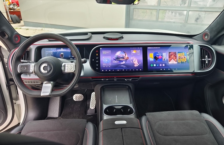 Wie eingangs erwähnt, ist beim #5 Brabus aber nicht alles Gold, was glänzt. Weniger überzeugend ist die Bedienlogik: Vieles – teils zu viel – läuft über den 13 Zoll großen Touchscreen, etwa auch die Spiegelverstellung. Zwar funktioniert die Sprachsteuerung gut, doch klassische Tasten wären in manchen Situationen schlicht praktischer. Positiv hervorzuheben sind dagegen die gute Konnektivität, die brillante Grafik am Zentralbildschirm, das ausreichend informative 10,25-Zoll-Kombiinstrument sowie das gestochen scharfe Head-up-Display. Der animierte Avatar "Leo" ist eine nette Spielerei, meldet sich aber hin und wieder auch ungefragt zu Wort.