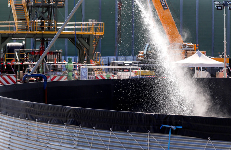 Das geförderte Wasser könnte entscheidende Informationen liefern. Der Fördertest an der ersten Bohrung erstreckt sich über etwa eine Woche. In diesem Zeitraum werden bis zu 3.400 Kubikmeter Wasser an die Oberfläche gepumpt und in Becken geleitet. Der Test diene dazu, die vorhandenen Wassermengen und Temperaturen nachzuweisen und gleichzeitig die chemische Zusammensetzung zu analysieren. Da Formationswasser aus großer Tiefe stark mineralisiert ist, ist die genaue Kenntnis der Inhaltsstoffe wesentlich für die Detailplanung der Anlage an der Oberfläche.