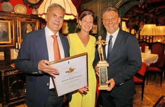 Bei der Verleihungsfeier des Preises für besondere Verdienste zur Pflege der Strauss-Musik drehten sich zahlreiche Prominente im Marchfelderhof im Dreiviertel-Takt und ließen den Kammersänger hochleben.