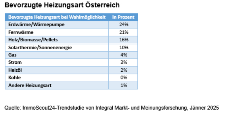 Bevorzugte Heizungsart Österreich © ImmoScout24