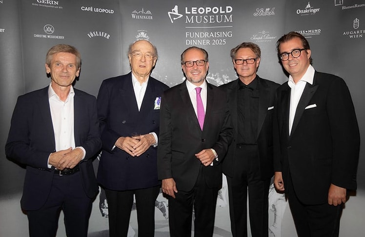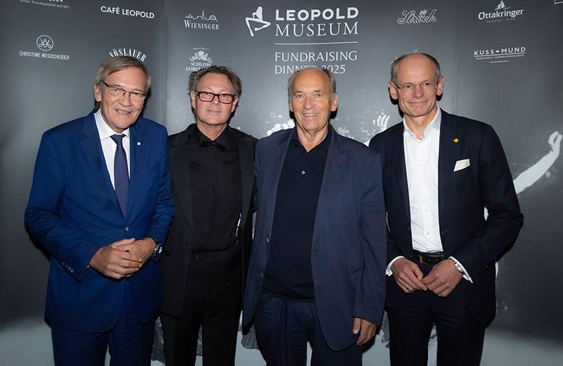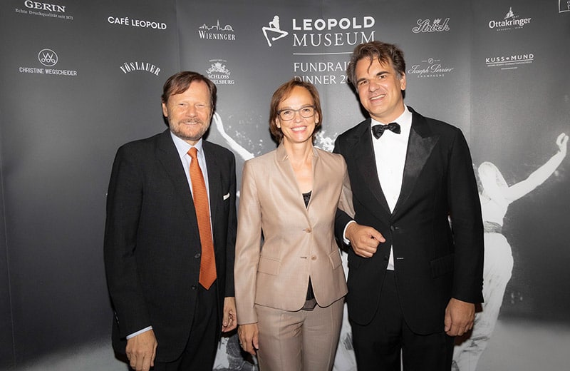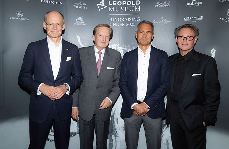 Der Einladung durch die Direktoren des Leopold Museum folgten rund 320 Personen unter ihnen Josef Ostermayer, Vorstandsvorsitzender der Leopold Museum-Privatstiftung, die LMPS-Vorstandsmitglieder Sonja Hammerschmid und Saskia Leopold, Ralph Müller (GD, Wiener Städtische), Robert Lasshofer (Aufsichtsratsvorsitzender, Wiener Städtische), Walter Oblin (GD, Post AG), Barbara Potisk Eibensteiner (CFO, Vorstand Post AG), Harald Friedrich (stv. VS-Vorsitzender, LLB), Michael Strugl (Verbund), Sabina Baumgartner-Parzer (MedUni Wien) und Thomas Baumgartner (Board des Circle of Patrons, Leopold Museum), Martin Böhm (GF Dorotheum), Michael Kovacek (geschäftsführender Gesellschafter, im Kinsky), Rupert Keim (geschäftsführender Gesellschafter, Karl & Faber Kunstauktionen), Angela Baillou (GFin, Christie's Österreich), Sammler Christian Knobloch (CKV Gruppe), Christiane Wenckheim (Aufsichtsrat, Post AG), Eugen Otto (GF, Otto Immobilien), Unternehmer Lothar Wesemann, die Künstler:innen Xenia Hausner, Eva Schlegel, Erwin Bohatsch, Adrian Kowanz, Constantin Luser und Hubert Scheibl, Stefan Ottrubay (Vorsitzender, Esterházy-Stiftungen, Sammler Werner Trenker (MED Trust), Peter Umundum (Vorstand, Post AG), Sammler Cornelius Broere, Helmut Schoba (GF, VGN), Clemens Schindler (Schindler Rechtsanwälte), Michaela Kamler (F. Trenka), Maria Planegger (A01 architects), Opernsänger Clemens Unterreiner (Intendant, Festival Oper Burg Gars), MQ-Direktorin Bettina Leidl, Christian Bertsch (VISTA), Christine Wegscheider (Salon Wegscheider), Jakob Piringer (hs art), Catharina Knobloch (CKV Gruppe / Komitee Salon Leopold), Günther Oberhollenzer (Künstlerhaus), Sylvia Kovacek, Katharina Zetter-Karner, die Galerist:innen Susanne Bauer, Claudia Kovacek-Longin, Claudia Mörth-Gasser, Ebi Kohlbacher und Lui Wienerroither (Wienerroither & Kohlbacher), u.v.m.