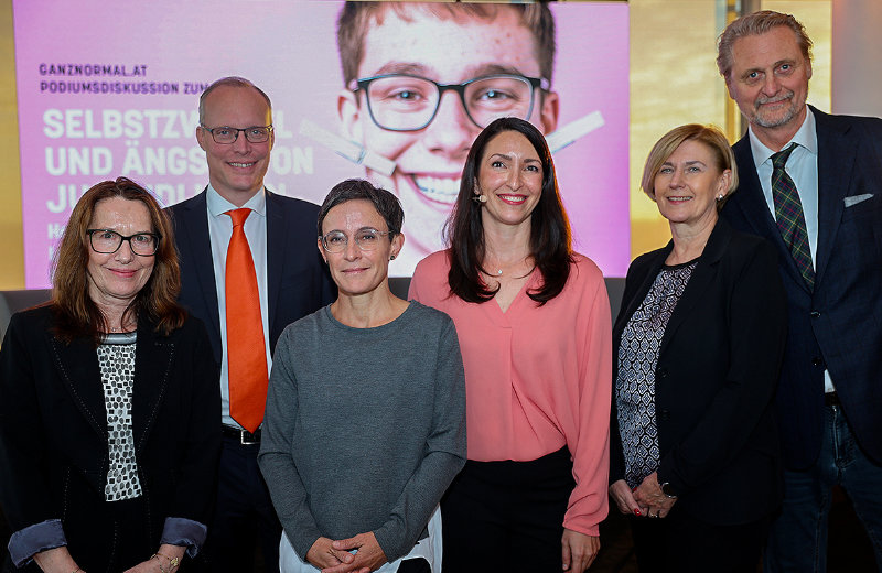 Die Podiumsdiskussion fand unter dem Titel "Selbstzweifel und Ängste von Jugendlichen" statt. Gleich zu Beginn arbeitete Georg Psota, stellvertretender Vorsitzender ganznormal.at und Facharzt für Psychiatrie und Neurologie, in seiner Keynote die Situation und Herausforderungen von Jugendlichen in der Schule heraus. Dabei ging es um Leiden wie Verunsicherungen, Ängste, Depressionen oder Süchte. Im Fokus stand dementsprechend auch die dauerhafte Benutzung von Smartphones in Verbindung mit Social Media. Sie und andere Belastungen würden bei Jugendlichen zu Überforderungen führen, so der Experte.