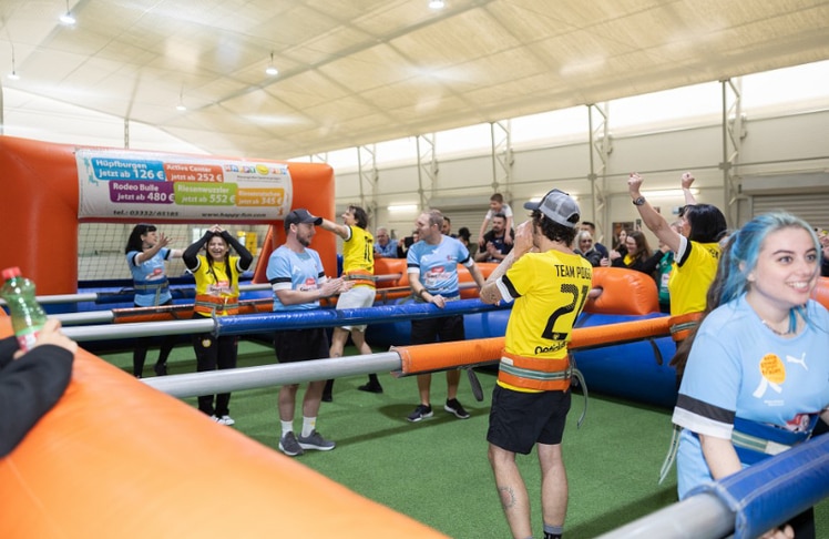 Um dieses Jahr aber nicht vollständig auf das Event verzichten zu müssen und weiterhin Gutes zu tun, hat man sich ein mindestens genauso spektakuläres Alternativprogramm überlegt: Nach dem sommerlichen "Bierkistlsingen" in der Ottakringer Brauerei, bei dem Musiker:innen bereits 2.633 Euro an Spendengeldern sammelten (LEADERSNET berichtete), ging am Sonntagabend, dem 5. Oktober, mit dem "Kickerl Royale" ein XXL-Wuzzler-Turnier über die Bühne. Dabei traten Prominente in sechs Teams erstmalig nicht am grünen Rasen, sondern in der SV Donau-Indoorhalle im Riesenwuzzler gegeneinander an.