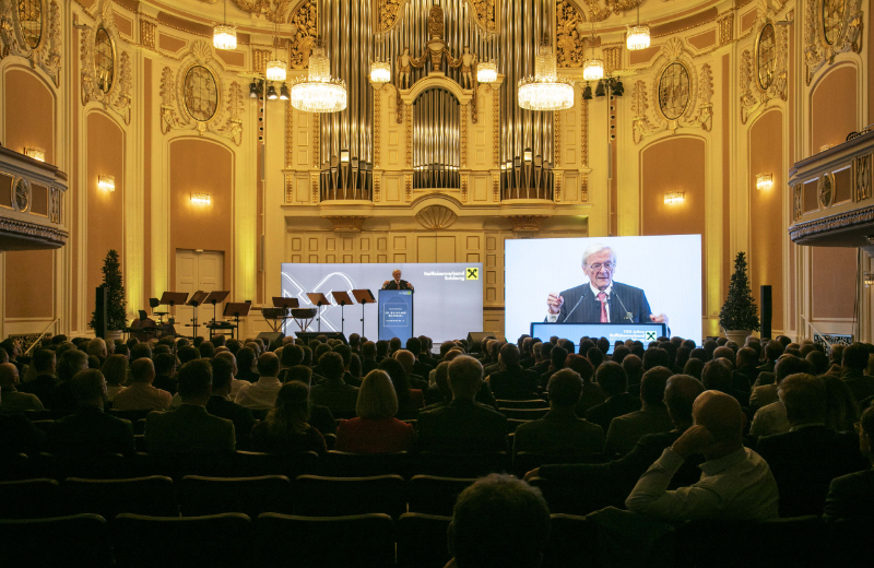 Begrüßt wurden die Gäste durch RVS-Obmann Erich Zauner, der in seiner Festrede einen Rückblick auf die Entstehung des RVS gab: "Von der Gründung im Jahre 1905 über zwei Weltkriege, zahlreiche Wirtschaftskrisen und geopolitische Einflüsse, Auslandsengagements und die zunehmende Bedeutung von Beteiligungen – der genossenschaftlich organisierte Raiffeisenverband Salzburg ist eine Erfolgsstory. Heute beschäftigen der RVS im Bankbereich sowie die 100-prozentige-Tochter Raiffeisen Lagerhaus Salzburg GmbH rund 1.700 Mitarbeiter:innen." Darüber hinaus zeigte er sich besonders stolz, dass inzwischen 370.000 Kund:innen dem Finanzdienstleister, der im abgelaufenen Geschäftsjahr 2024 eine Bilanzsumme von knapp 10,8 Milliarden Euro auswies, vertrauen würden.