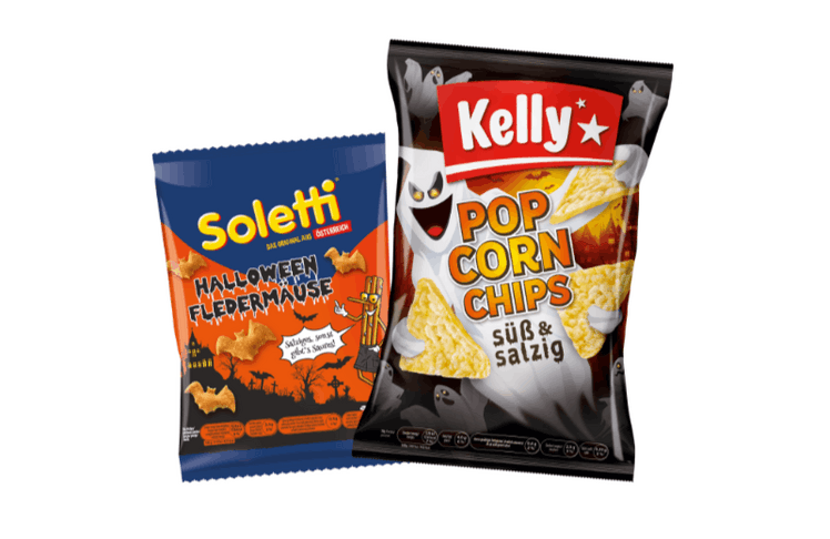 Und so bringen auch in diesem Jahr diverse Lebensmittelunternehmen Halloween Specials auf den Markt – darunter auch Kelly. Mit Soletti Fledermäusen und Kelly Popcornchips süß & salzig liefert der Snackhersteller gleich zwei "schaurige" Knabbereien. Die limitierten Halloween-Editionen werden in Feldbach aufgepoppt und gebacken. Zusätzlich werden die Popcornchips mit einer süß-salzigen Würzung verfeinert. Beide Produkte sind laut Hersteller 100 Prozent palmölfrei und ohne künstliche Geschmacksverstärker.