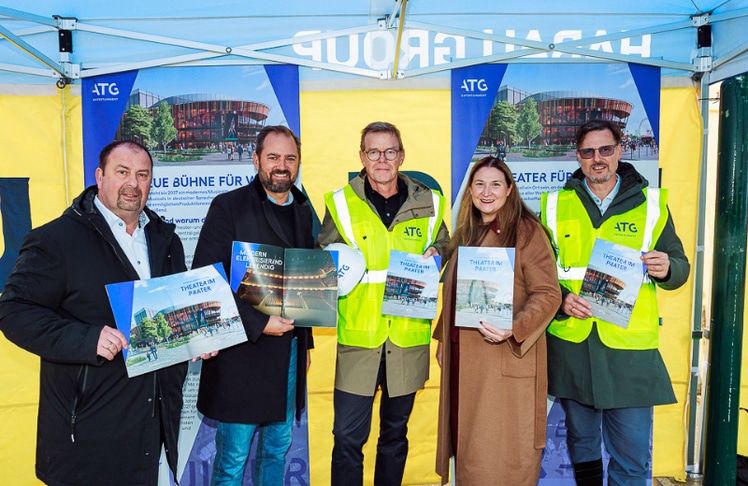 Nach der Erstpräsentation des Projektes im Dezember des Vorjahres (LEADERSNET berichtete) wurde am Montag mit einem feierlichen Spatenstich im Wiener Prater der offizielle Baustart für das neue "Theater im Prater" vollzogen. Auf dem Podium standen unter anderem Barbara Novak (Wirtschaftsstadträtin), Markus Ornig (NEOS-Wirtschaftssprecher), Alexander Nikolai (Bezirksvorsteher des 2. Bezirks), Joachim Hilke (CEO von ATG Entertainment Central Europe) sowie Matthias Prichzi (Geschäftsführer der ATG‑Live GmbH).