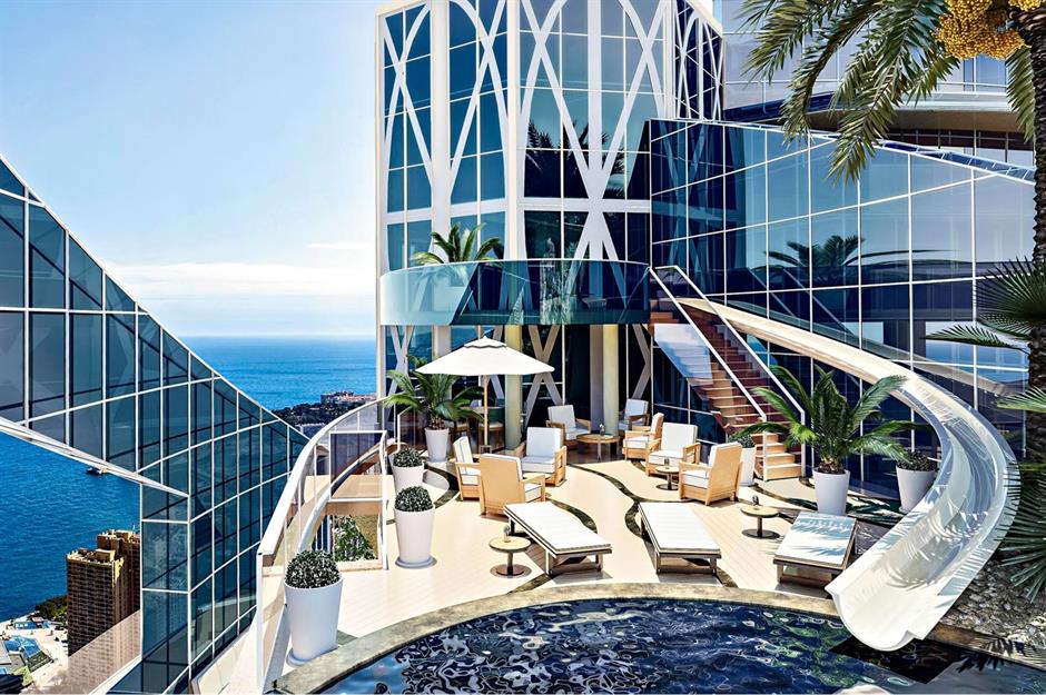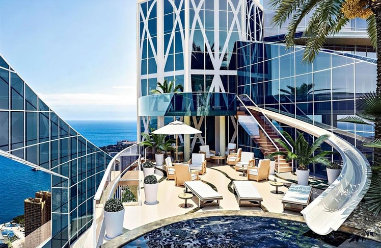 Auch in Europa gibt es Großartiges. Monaco ist bekannt für seine Extravaganz, und das Penthouse im Odeon Tower stellt dies auf eindrucksvolle Weise unter Beweis. Es befindet sich auf den obersten fünf Etagen des höchsten Gebäudes von Monaco, 170 Meter über dem Meeresspiegel. Auf über 3.000 Quadratmetern erstreckt sich das Penthouse über fünf Etagen und bietet einen spektakulären Blick auf die Bucht von Monaco. Mit einer privaten Wasserrutsche, die von der Tanzfläche direkt in den Infinity-Pool führt, und einem modernen Design aus natürlichen Materialien, ist dieses Penthouse ein wahrer Traum.