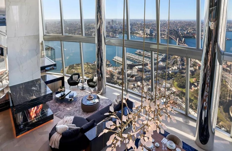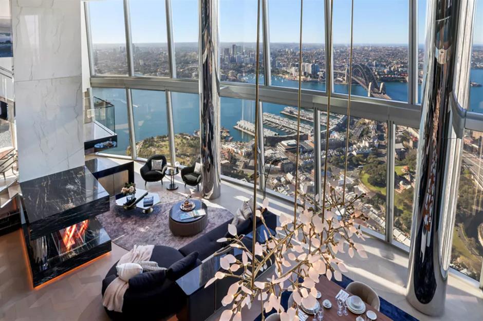Das Penthouse der Crown Residences in New South Wales liegt 244 Meter über dem Meeresspiegel und befindet sich im höchsten Gebäude von Sydney. Mit großzügigen 798 Quadratmetern luxuriöser Fläche präsentiert es sich als Kathedrale aus Glas, Chrom und schwarzem Marmor. Das Penthouse verfügt über mehrere Unterhaltungsbereiche, ein Büro, ein privates Schwimmbad, ein Kino, ein Fitnessstudio und über 46 Quadratmeter Außenfläche auf drei wettergeschützten Balkonen.