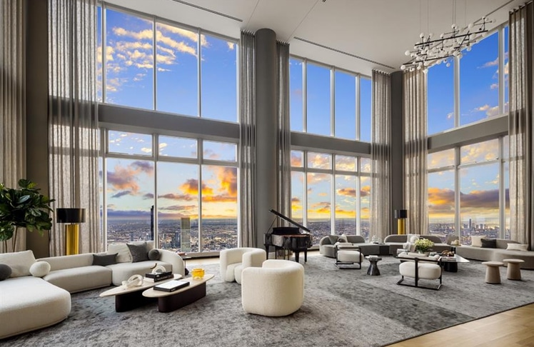431 Meter über Manhattan schwebt eine Wohnung, die selbst in einer Stadt der Superlative neue Maßstäbe setzt. "The One Above All Else"– der Name des Penthouses im Central Park Tower ist Programm. Fast so hoch wie das Empire State Building thront die Immobilie über der Skyline und trägt gleich zwei Weltrekorde: Sie ist nicht nur die weltweit höchste Dachwohnung, sondern war mit einem ursprünglichen Verkaufspreis von rund 234 Millionen Euro auch die teuerste in Amerika. Nach einer Preisreduktion steht die Wohnung zuletzt für rund 182 Millionen Euro zum Verkauf.