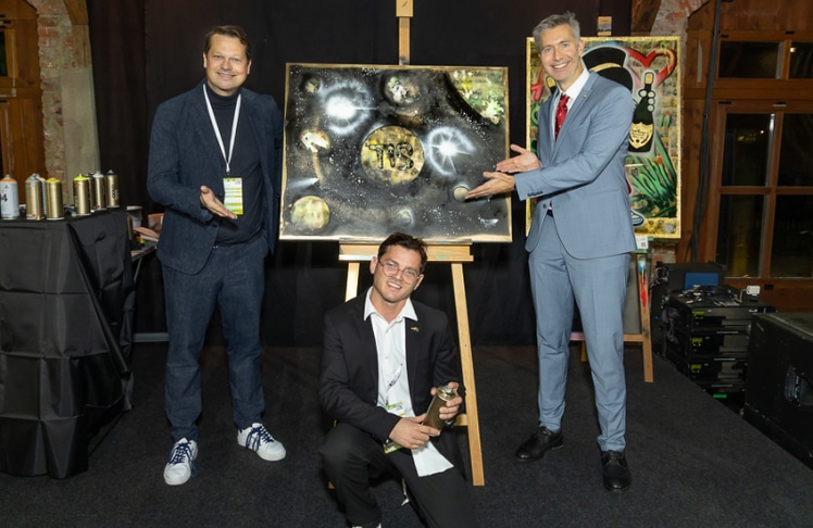 Den Abschluss des Konferenztages markierte das Afternoon Social, bei dem der lokale Künstler Stebo eine 20-minütige Live-Performance präsentierte, in der ein originales Kunstwerk entstand. Ergänzend erläuterte OwnerChip-CEO Michael Schramm, wie Authentizität, KI und Blockchain physische Kunst mit digitalen Anwendungen verbinden.