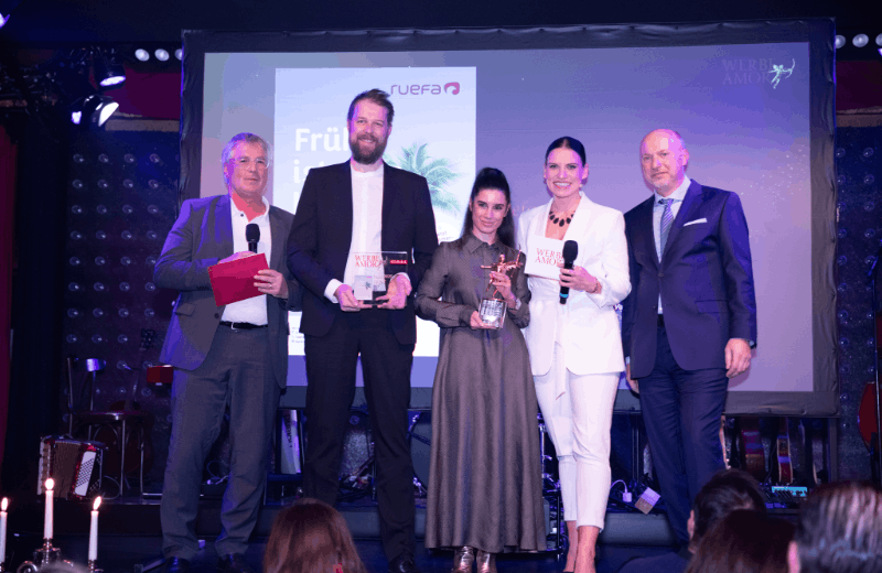 Der Werbe-Amor in Gold, den Martin Gebhart und Stefan Lechner, Bereichsleitung MediaPrint, übergaben, ging in der Kategorie Print an Ruefa. Entgegengenommen wurde der Preis von Oliver Cleven und Djeiran Malek. Den Werbe-Amor in Silber erhielt Ja! Natürlich. Carina Resch übernahm für Ja! Natürlich, Bettina Übleis für die Agentur Merlicek & Partner die Auszeichnung.