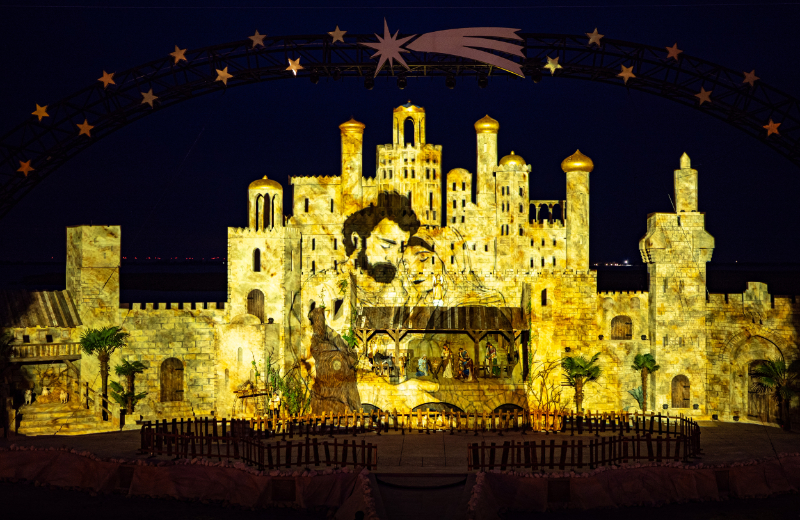 Im Vergleich zum vergangenen Jahr wurde das Wintererlebnis am Neusiedler See nochmals deutlich erweitert: Der neu gestaltete Lichterpfad im Seebad führt Besucher:innen durch stimmungsvolle Lichtinstallationen, die das Burgenland und den See in Szene setzen sollen. Insgesamt wurden dafür 25 Kilometer Lichterketten, 376.000 Lichtpunkte und rund 100 Kilometer Kabel verlegt. Der Rundgang führt schließlich zum Höhepunkt des Winterwunder Mörbisch: die weltweit größte Weihnachtskrippe, die direkt auf der Seebühne errichtet wurde. Das von Bühnenbildner Manfred Waba entworfene Monument wird stündlich durch eine multimediale Mapping-Show, verantwortet von Lichtdesigner Mischael Anton und dem Team von EJ Creations, zum Leben erweckt. Mit moderner Medientechnik sowie ausdrucksstarken Bildwelten und Storytelling verwandelt sich die Szenerie in eine bewegte Installation, die das Publikum immersiv eintauchen lassen soll.