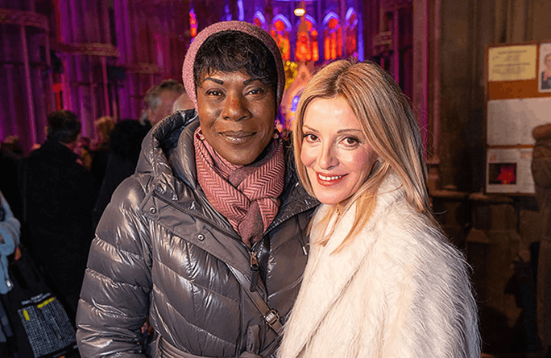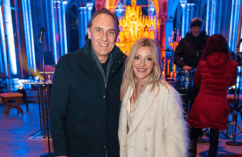 Billi Thanner vor der Votivkirche, die ihre neueste Installation trägt. © Andreas Tischler