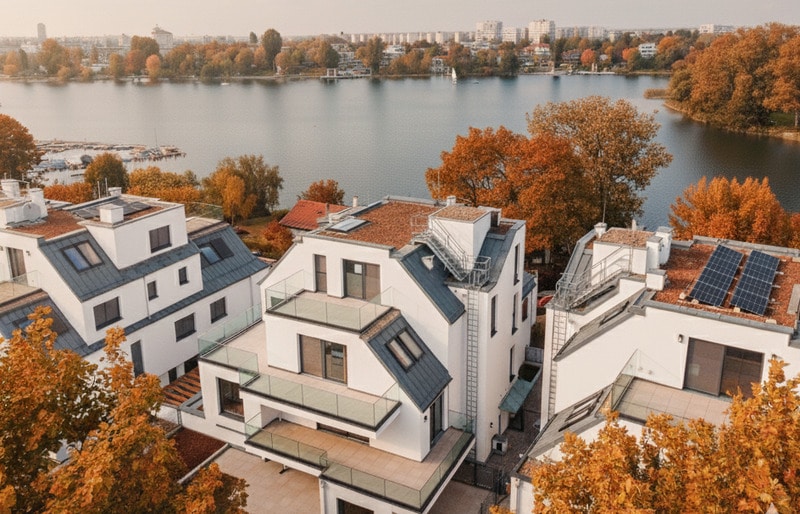 Genau hier, zwischen Kaiserwasser und Gänsehäufel, hat der Premium-Bauträger Glorit im Sommer 2025 ein architektonisches Highlight fertiggestellt. Das Projekt umfasst elf hochwertige Eigentumswohnungen mit direktem Wasserblick. Ein wesentlicher Punkt, der am Wiener Markt besonders ins Gewicht fällt: Die Einheiten wurden auf Eigengrund errichtet, das gilt in dieser exklusiven Lage als eine absolute Seltenheit. Gleich nebenan, am Fischerstrand 22, wurden vier Einheiten auf Baurechtsgrund errichtet.
