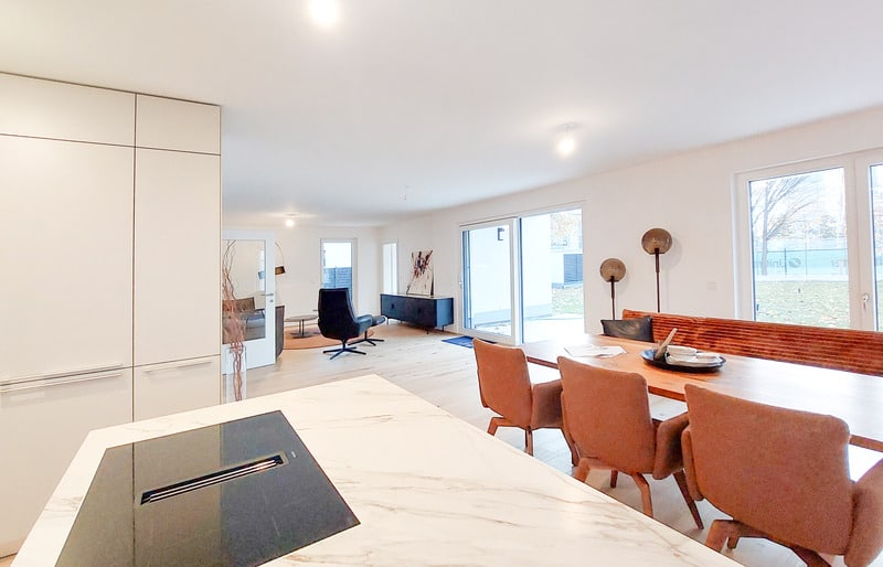 Ein modernes Zuhause wird heute maßgeblich über das Raumklima definiert. Das Energiekonzept des Projekts ist daher zukunftssicher und nachhaltig ausgelegt: Eine hauseigene Wärmepumpe sorgt gemeinsam mit einer Photovoltaikanlage für effiziente Energie, während die einzeln regulierbare Fußbodenheizung und eine integrierte Deckenkühlung das ganze Jahr über für Wohlfühltemperaturen sorgen. Auch an den praktischen Komfort wurde gedacht: Jede Wohnung verfügt über ein eigenes Kellerabteil, und in der Tiefgarage stehen großzügige Parkplätze im XL-Format zur Verfügung.
