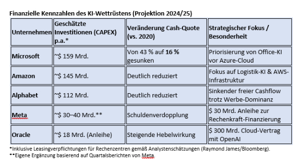 Finanzielle Kennzahlen des KI-Wettrüstens (Projektion 202425) © Bernhard Führer