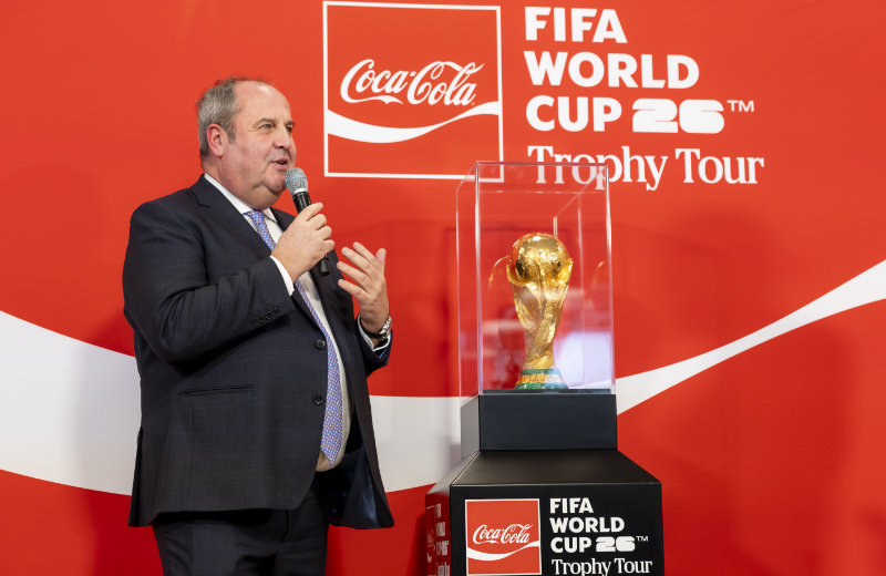Rund ein halbes Jahr vor der FIFA Weltmeisterschaft machte das bekannteste Symbol des internationalen Fußballs im Zuge der FIFA World Cup Trophy Tour by Coca-Cola Station in Österreich. Austragungsort dieses exklusiven Stopps war der neu errichtete ÖFB Campus im Wiener Stadtteil Aspern, der an diesem Tag ganz im Zeichen des Weltfußballs stand. Als langjähriger Partner der FIFA verfügt Coca-Cola über die exklusiven Rechte an der globalen Trophy-Tour, die auf mehr als 75 Stationen die Faszination des Fußballs weltweit erlebbar machen soll. Der WM-Pokal war im Rahmen dieser Tour in einer Vitrine ausgestellt und bot Fußballfans eine außergewöhnliche Gelegenheit, das ikonische Objekt hautnah zu sehen.