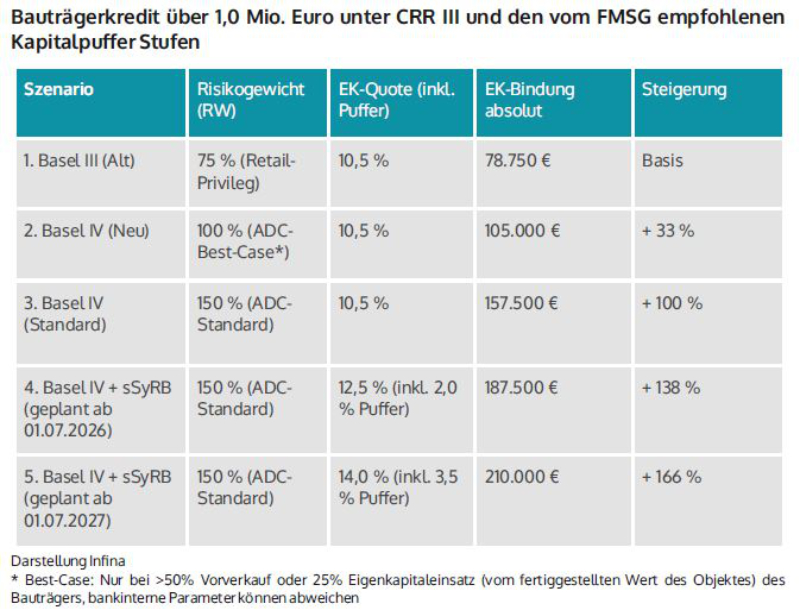 Baukredit über 1,0 Millionen Euro unter CRR III und den vom FMSG empfohlenen Kapitalpuffer Stufen © Infina