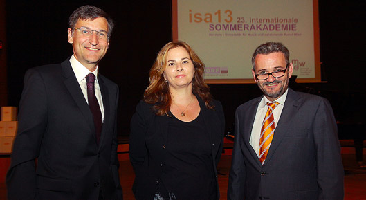 Trachtenpaare stellen Logo des Festes nach, "Austrian Rock" bewegt Riesenrad mit Muskelkraft.