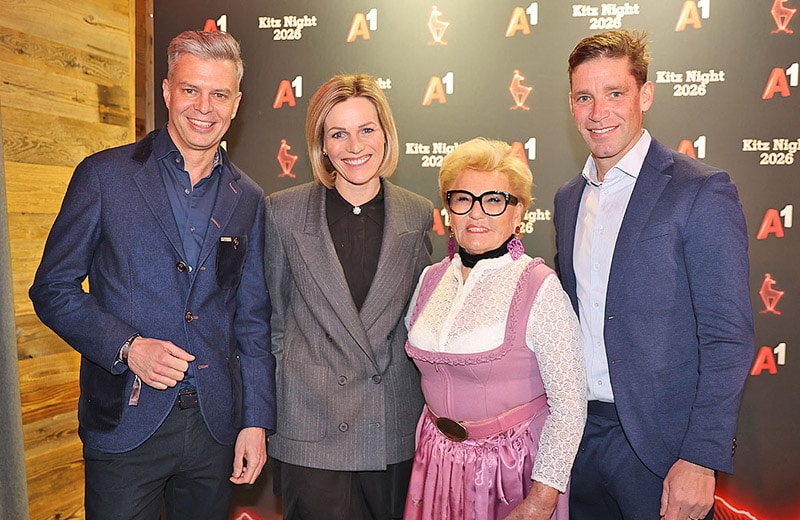 Auch in diesem Jahr lud A1 im Rahmen des Hahnenkamm-Wochenendes zur A1 Kitz Night in Rosi’s Sonnbergstuben. Die traditionsreiche Veranstaltung fand 2026 unter dem Motto "Passion for Skiing" statt. Der Einladung der A1-Vorstände Thomas Arnoldner, Jiří Dvorjančanský, Martin Resel und Sonja Wallner nach Kitzbühel folgten hochrangige Vertreter:innen aus Wirtschaft, Politik und Sport.