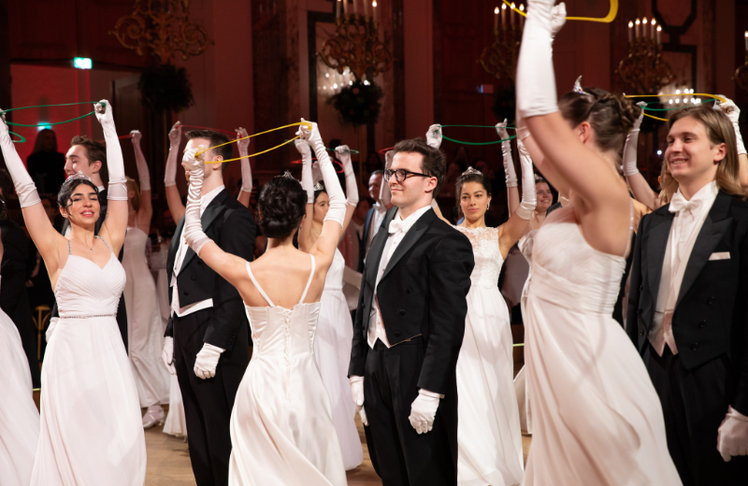 Unter dem Motto "Ein Tanz für das Leben" wartete die Tanzveranstaltung in der Wiener Hofburg heuer mit einem bunten Programm auf, das Musik mit Akrobatik und Zirkuskunst verknüpfte.