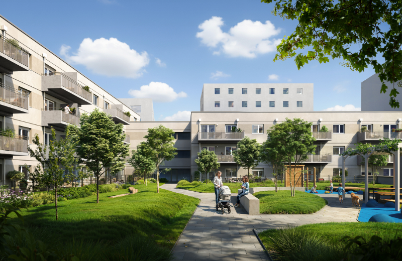 Das Wohnumfeld ist verkehrsberuhigt und grün strukturiert. © Kallco/Zoa