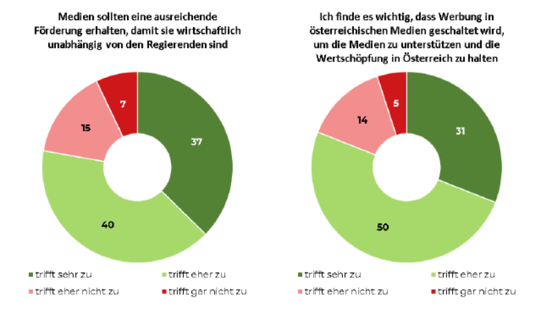Medien sollten eine ausreichende Förderung erhalten, damit sie wirtschaftlich unabhängig von den Regierenden sind/ Ich finde es wichtig, dass Werbung in österreichischen Medien geschaltet wird, um die Medien zu unterstützen und die Wertschöpfung in Österreich zu halten. © Ifes