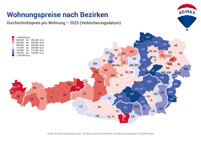 Der österreichische Eigentumswohnungsmarkt hat sich im Jahr 2025 deutlich erholt. Das geht aus dem "Remax-Immospiegel: Eigentumswohnungen 2025" hervor, der auf sämtlichen im Grundbuch erfassten Transaktionen basiert. Datengrundlage ist die Kaufvertragssammlung von IMMOunited, die alle tatsächlich verbücherten Wohnungskäufe in Österreich umfasst.