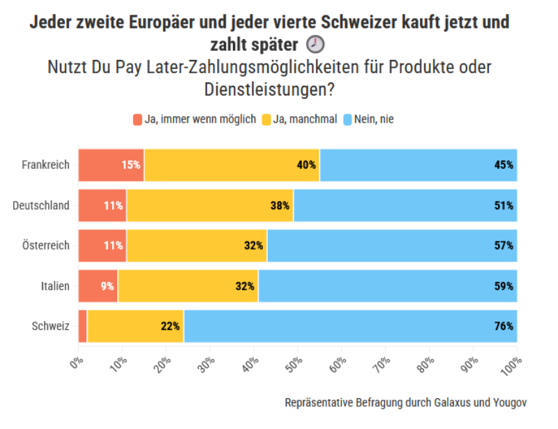 Jede:r zweite Europäer:in und jede:r vierte Schweizer:in kauft jetzt und zahlt später © Galaxus und Yougov