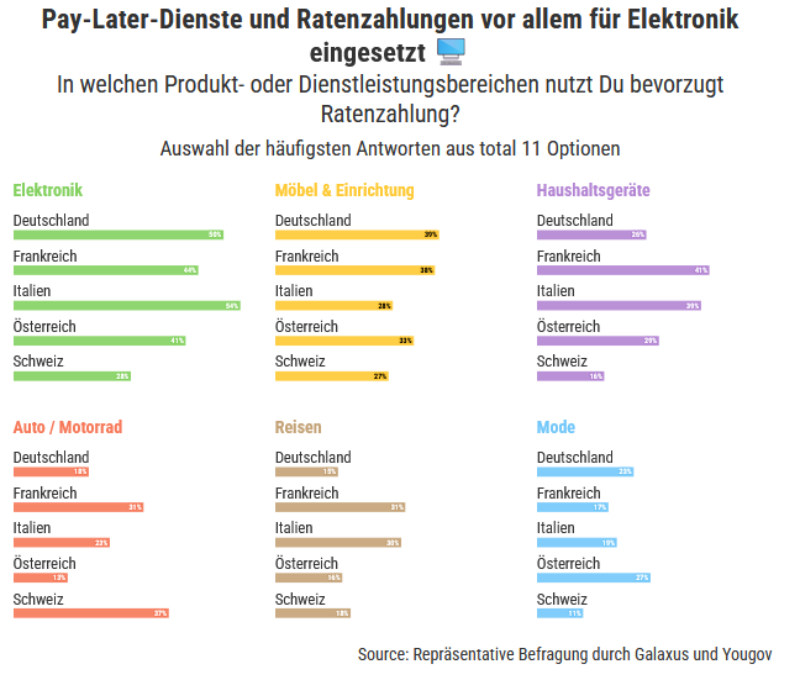 Pay-Later-Dienste und Ratenzahlungen vor allem für Elektronik eingesetzt © Galaxus und Yougov